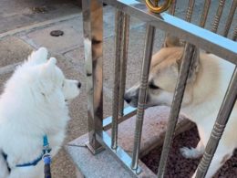 好狗緣!小薩堅持散步「一定要拜訪麻吉」 門外喊哈士奇:出來抱抱喔❤️
