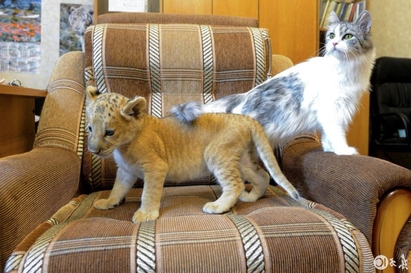 小奶獅遭棄養!帶回家給貓貓照顧 牠親暱舔毛貓一臉嫌棄:放尊重點喔