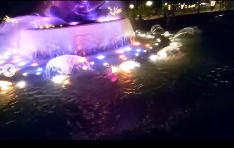 港男脫剩底褲暢游迪士尼噴水池 爬雕塑打卡被批自私 官方咁回應