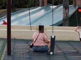 「啪一聲」坐斷公園鞦韆還嘻笑! 網看照片直呼:要賠償